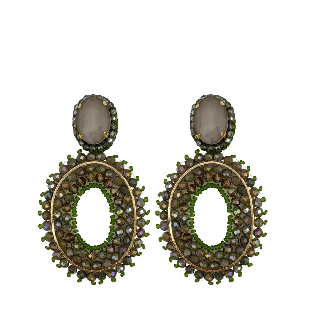 Paulie Pocket | Oval Stone Earrings – Olive Green